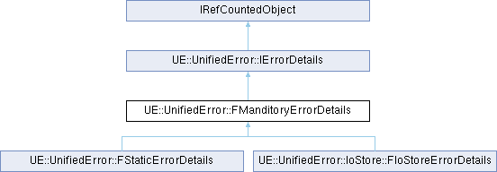 Inheritance diagram for UE::UnifiedError::FManditoryErrorDetails:Public Member Functions | |