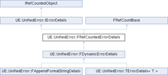 Inheritance diagram for UE::UnifiedError::FRefCountedErrorDetails:Additional Inherited Members | |
