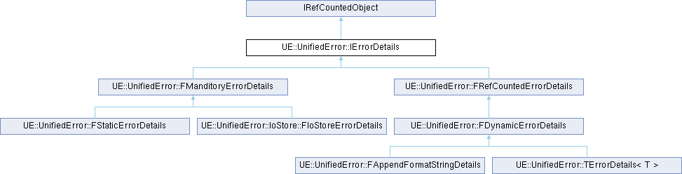 Inheritance diagram for UE::UnifiedError::IErrorDetails:Public Member Functions | |