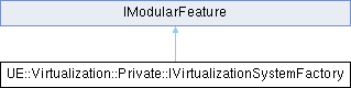 Inheritance diagram for UE::Virtualization::Private::IVirtualizationSystemFactory:Public Member Functions | |