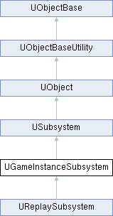 UGameInstanceSubsystem Base class for auto instanced and initialized systems that share the lifetime of the game instance
