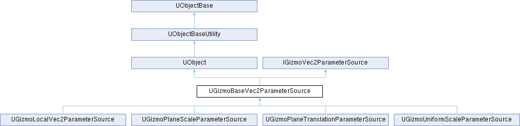 UGizmoBaseVec2ParameterSource is a base implementation of IGizmoVec2ParameterSource, which is not functional but adds an OnParameterChanged delegate for further subclasses.