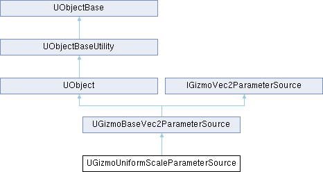 UGizmoUniformScaleParameterSource is an IGizmoVec2ParameterSource implementation that interprets the Vec2 parameter as the position in a 2D plane, and maps this parameter to a change in a uniform scale value. This scale is applied to an IGizmoTransformSource.
