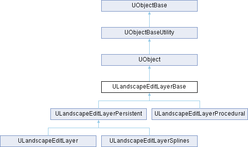 Base class for all landscape edit layers. By implementing the various virtual functions, we are able to customize the behavior of the edit layer wrt the landscape tools in a generic way (e.g. does it support sculpting tools? painting tools? can it be collapsed?, etc.)