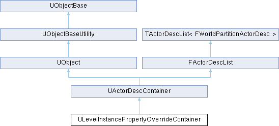 LevelInstancePropertyOverrideContainer is a proxy to its ContainerPackage ActorDescContainer plus some potential ActorDesc overrides for its proxy Container or any other child Container in its Container child hierarchy.