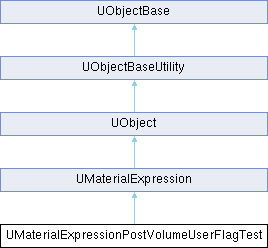 + Inheritance diagram for UMaterialExpressionPostVolumeUserFlagTest: