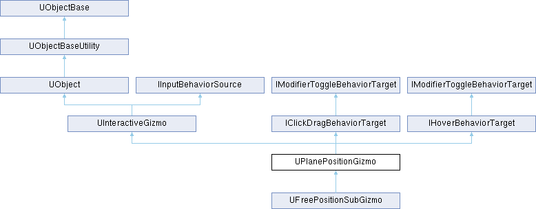 UPlanePositionGizmo implements a gizmo interaction where 2D parameter value is manipulated by dragging a point on a 3D plane in space. The 3D position is converted to 2D coordinates based on the tangent axes of the plane.