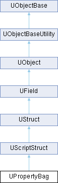 A script struct that is used to store the value of the property bag instance. References to UPropertyBag cannot be serialized, instead the array of the properties is serialized and new class is create on load based on the composition of the properties.