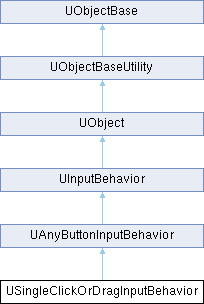 USingleClickOrDragInputBehavior is a combination of a USingleClickBehavior and UClickDragBehavior, and allows for the common UI interaction where a click-and-release does one action, but if the mouse is moved, then a drag interaction is started. For example click-to-select is often combined with a drag-marquee-rectangle in this way. This can be directly implemented with a UClickDragBehavior but requires the client to (eg) detect movement thresholds, etc. This class encapsulates all that state/logic.