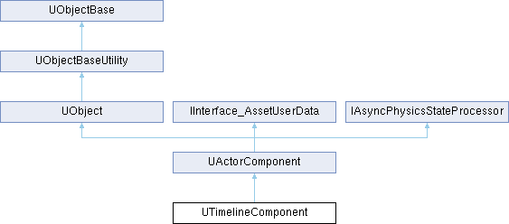 TimelineComponent holds a series of events, floats, vectors or colors with associated keyframes. Events can be triggered at keyframes along the timeline. Floats, vectors, and colors are interpolated between keyframes along the timeline.