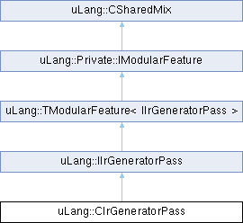 Inheritance diagram for uLang::CIrGeneratorPass:Public Member Functions | |