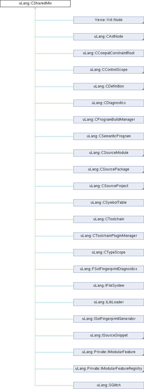 Inheritance diagram for uLang::CSharedMix:Public Member Functions | |