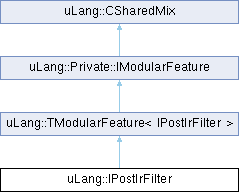 Inheritance diagram for uLang::IPostIrFilter:Public Member Functions | |