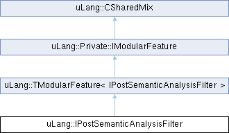 Inheritance diagram for uLang::IPostSemanticAnalysisFilter:Public Member Functions | |