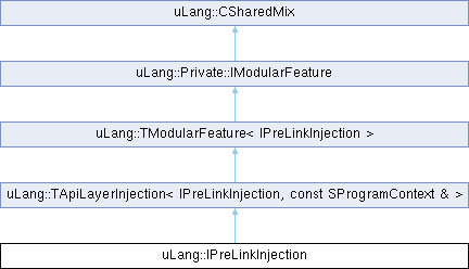 Inheritance diagram for uLang::IPreLinkInjection:Additional Inherited Members | |