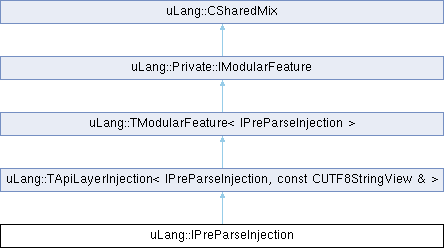Inheritance diagram for uLang::IPreParseInjection:Additional Inherited Members | |