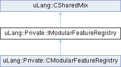 Inheritance diagram for uLang::Private::IModularFeatureRegistry:Friends | |