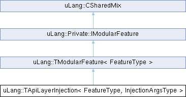 Inheritance diagram for uLang::TApiLayerInjection< FeatureType, InjectionArgsType >:Public Member Functions | |
