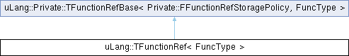 Inheritance diagram for uLang::TFunctionRef< FuncType >:Public Member Functions | |