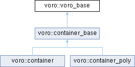 Inheritance diagram for voro::voro_base:Public Member Functions | |