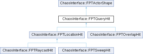 Inheritance diagram for ChaosInterface::FPTQueryHit:Public Attributes | |