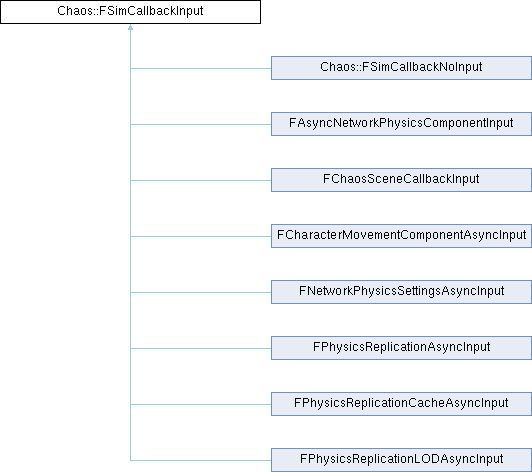 Inheritance diagram for Chaos::FSimCallbackInput:Public Member Functions | |