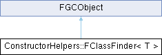 Inheritance diagram for ConstructorHelpers::FClassFinder< T >:Public Member Functions | |