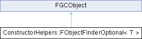 Inheritance diagram for ConstructorHelpers::FObjectFinderOptional< T >:Public Member Functions | |