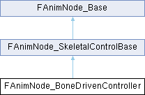 Inheritance diagram for FAnimNode_BoneDrivenController:This is the runtime version of a bone driven controller, which maps part of the state from one bone to another (e.g., 2 * source.x -> target.z)