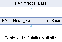 Inheritance diagram for FAnimNode_RotationMultiplier:Simple controller that multiplies scalar value to the translation/rotation/scale of a single bone.