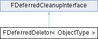 Inheritance diagram for FDeferredDeletor< ObjectType >:Public Member Functions | |