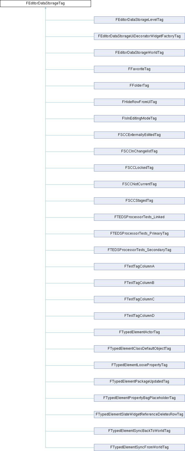 Inheritance diagram for FEditorDataStorageTag:Base for the data structures that act as tags to rows. Tags should not have any data.