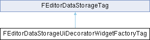 Inheritance diagram for FEditorDataStorageUiDecoratorWidgetFactoryTag:Tag used to uniquely identify widget factories for decorator widgets