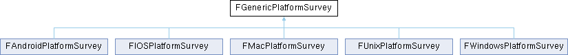Inheritance diagram for FGenericPlatformSurvey:Static Public Member Functions | |