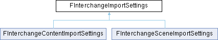 Inheritance diagram for FInterchangeImportSettings:Show the options dialog when Interchange imports.