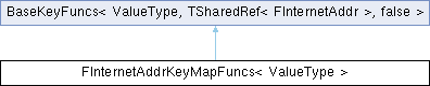 Inheritance diagram for FInternetAddrKeyMapFuncs< ValueType >:Static Public Member Functions | |