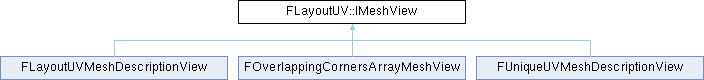 Inheritance diagram for FLayoutUV::IMeshView:Public Member Functions | |