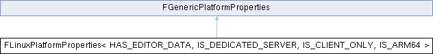 Inheritance diagram for FLinuxPlatformProperties< HAS_EDITOR_DATA, IS_DEDICATED_SERVER, IS_CLIENT_ONLY, IS_ARM64 >:Implements Linux platform properties.