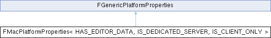 Inheritance diagram for FMacPlatformProperties< HAS_EDITOR_DATA, IS_DEDICATED_SERVER, IS_CLIENT_ONLY >:Implements Mac platform properties.