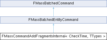 Inheritance diagram for FMassCommandAddFragmentsInternal< CheckTime, TTypes >:Public Types | |