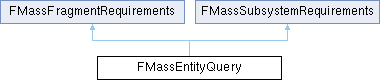 FMassEntityQuery is a structure that is used to trigger calculations on cached set of valid archetypes as described by requirements. See the parent classes FMassFragmentRequirements and FMassSubsystemRequirements for setting up the required fragments and subsystems.