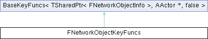 Inheritance diagram for FNetworkObjectKeyFuncs:Static Public Member Functions | |