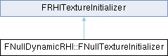 Inheritance diagram for FNullDynamicRHI::FNullTextureInitializer:Public Member Functions | |