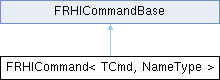 Inheritance diagram for FRHICommand< TCmd, NameType >:Public Member Functions | |