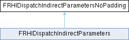 Inheritance diagram for FRHIDispatchIndirectParametersNoPadding:Public Attributes | |