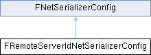Inheritance diagram for FRemoteServerIdNetSerializerConfig:Additional Inherited Members | |