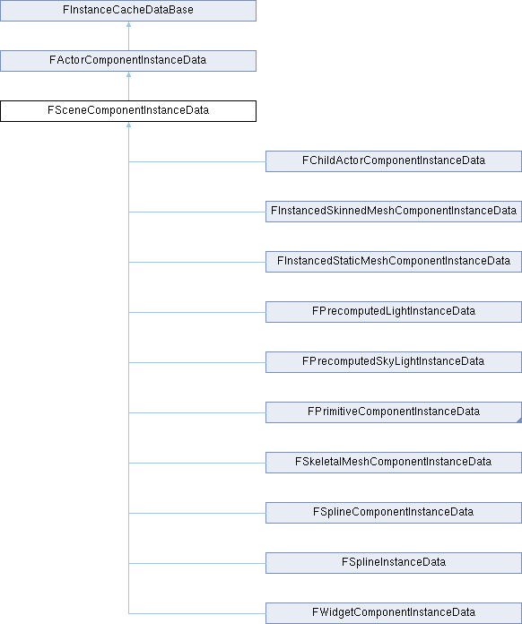 Inheritance diagram for FSceneComponentInstanceData:Public Attributes | |