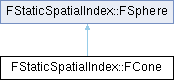 Inheritance diagram for FStaticSpatialIndex::FCone:Public Member Functions | |