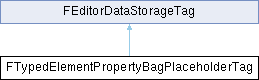 Inheritance diagram for FTypedElementPropertyBagPlaceholderTag:Tag to signal that a row represents a property bag "placeholder-typed" object reference. This object has an unknown base type and will generally be associated with a "property bag" containing any serialized data that was loaded for it as a set of "loose" properties.