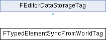 Inheritance diagram for FTypedElementSyncFromWorldTag:Tag to signal that data a processor copies out of the world must be synced to the data storage. Useful for when an Actor was recently spawned or reloaded in the world. Currently used if any property changes since there is no mechanism to selectively run queries for specific changed properties.